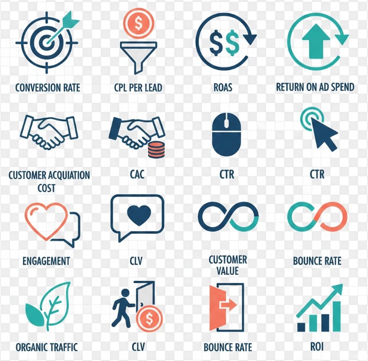 Key Performance Indicators (KPIs) are your marketing compass. They tell you whether you’re moving toward your goals or drifting off course. Without them, you’re navigating blind.