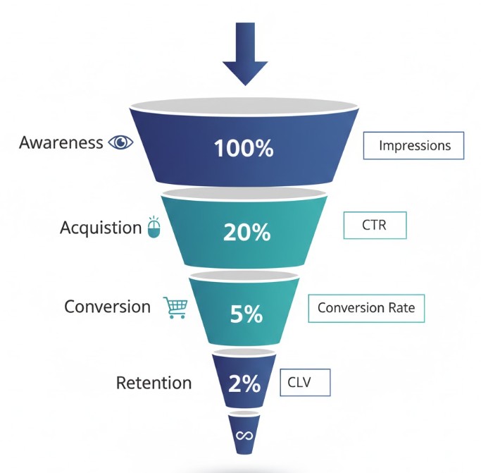 Why It’s Essential: CTR is your first indicator of marketing resonance. If people won’t even click, they’ll never convert. It’s also the gateway metric—without clicks, nothing else happens.